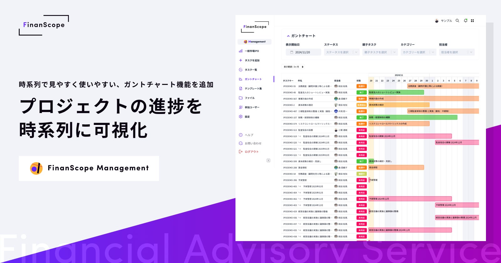 FinanScope、ガントチャート機能を追加し、上場準備のプロジェクト管理をさらに強化