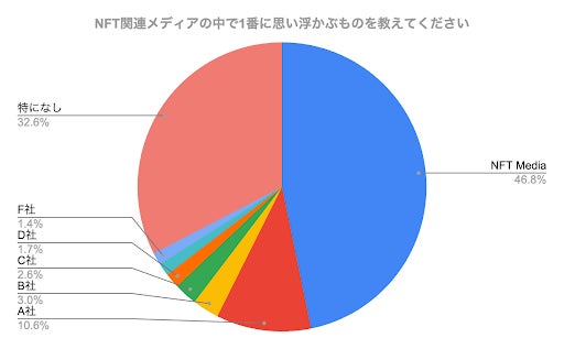 また、「1番最初に思い浮かぶNFT関連メディアは何か?」という質問に関しても、46.8%の方が第一想起として当メディアの名前を挙げてくださっていました。