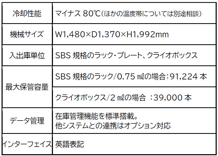 マイナス80℃等の低温環境下でサンプルや検体を管理する低温自動保管庫 低価格、短納期対応の「Snorkel™」をラインアップ