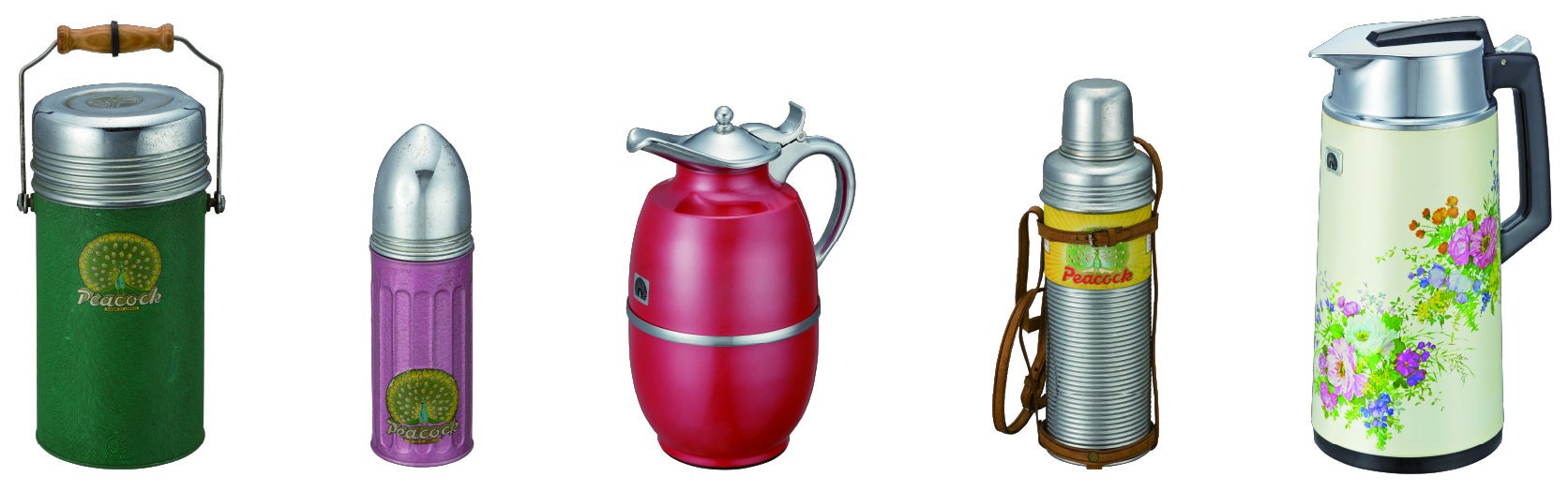 ピーコック魔法瓶73年の歴史を感じる、レトロ商品の展示もあります。生活をもっと豊かにするピーコック魔法瓶の原点です。