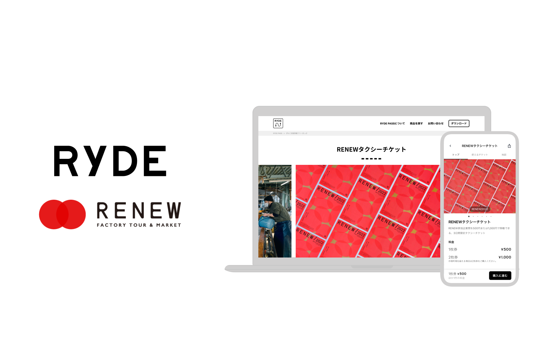 福井県鯖江市・越前市・越前町で開催される、持続可能な地域づくりを目指した工房見学イベント「RENEW(リニュー)」の会場移動を支援する「RENEWタクシーチケット」を、RYDEが提供するモビリティプラットフォーム