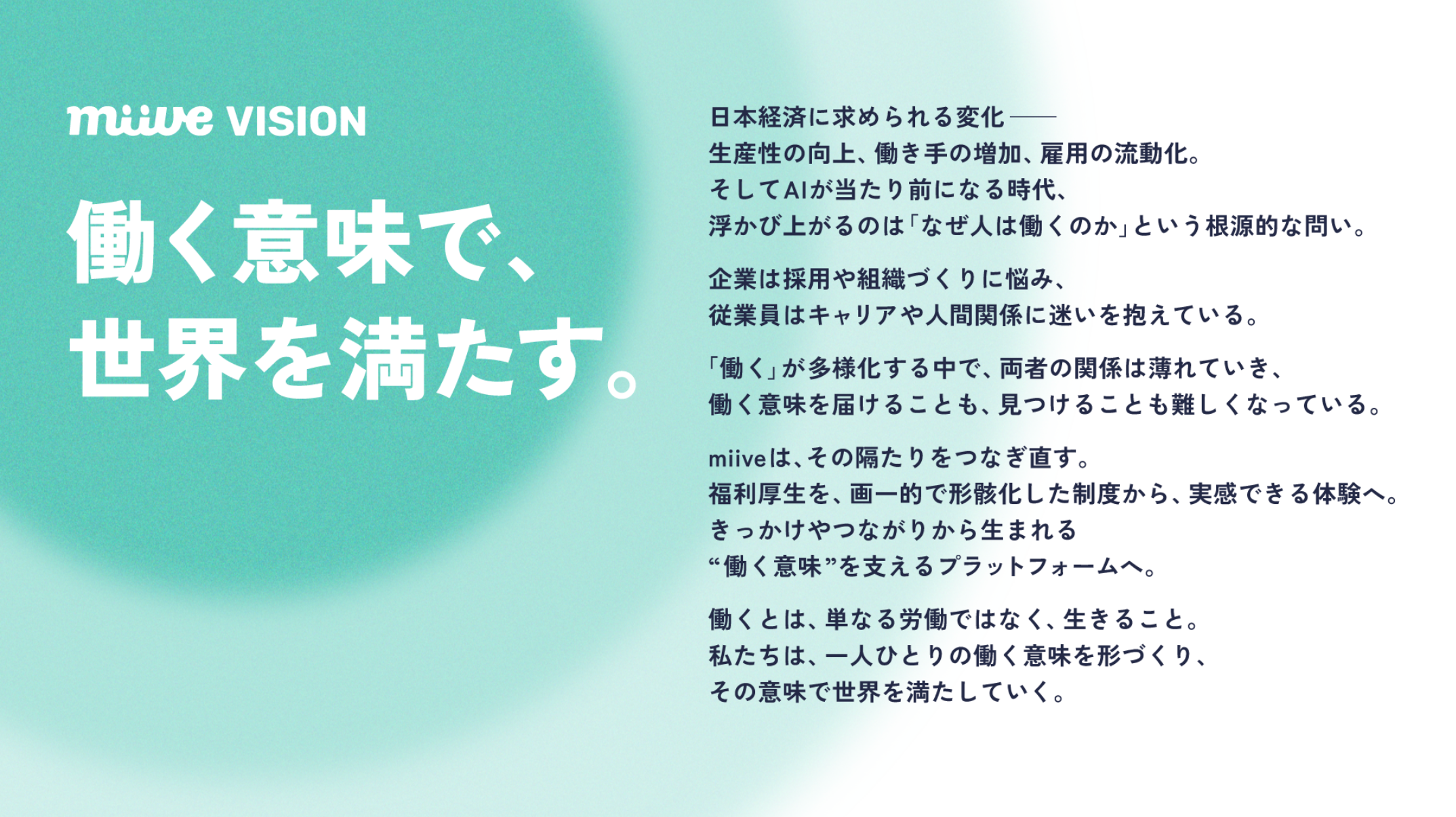 この度、新たなビジョンとして「働く意味で、世界を満たす」を策定いたしました。