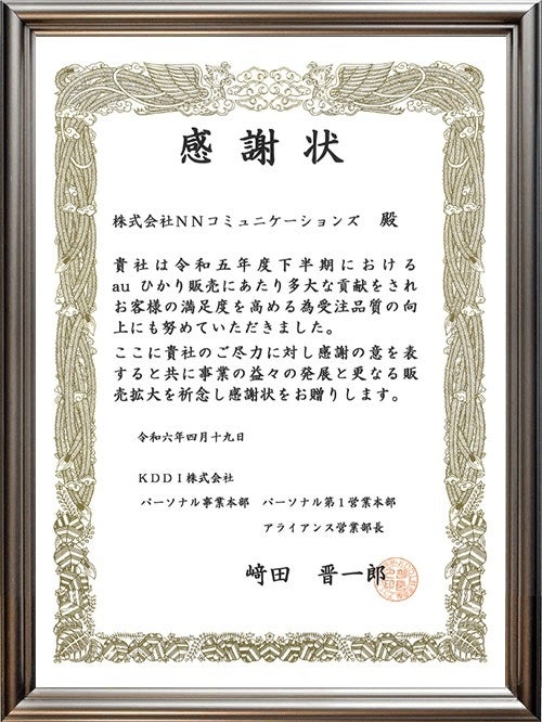 ▼感謝状掲載ページ:https://nn-com.co.jp/auhikari/company/#mokuji2