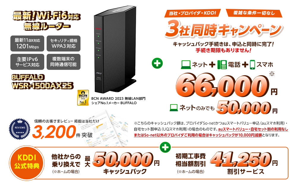 新品Wi-Fi6対応無線ルーター+キャッシュバック特典