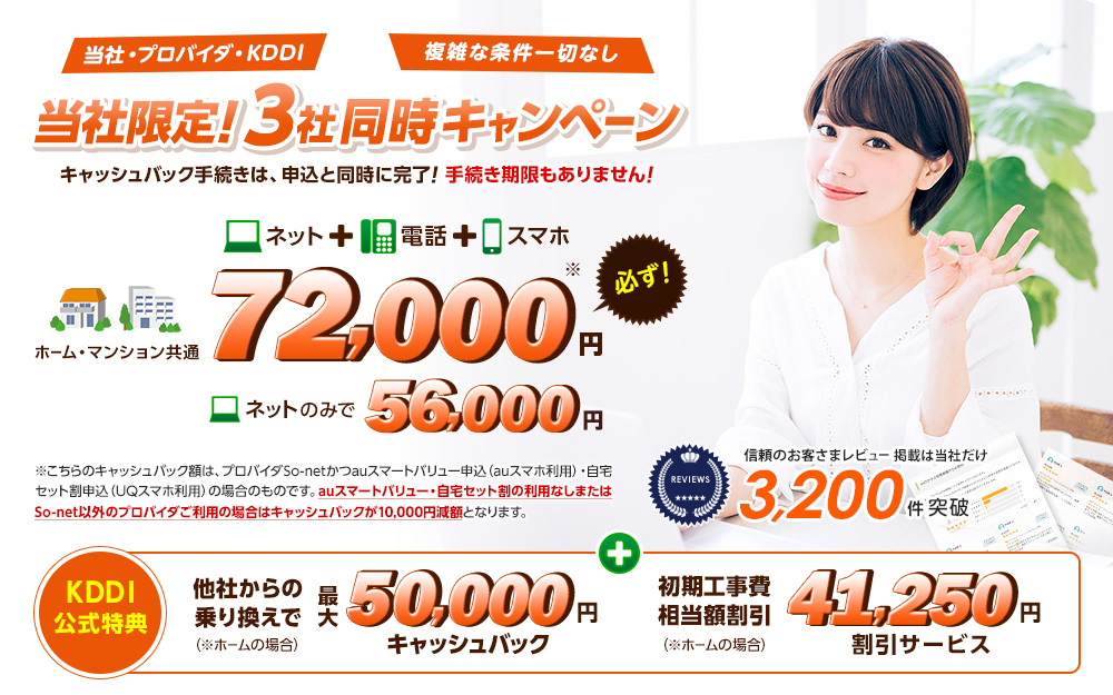KDDI公式(auひかり公式)特典も適用可能!!