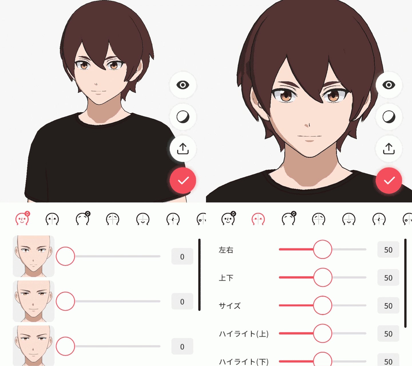 Aさん50%、Bさん50%のようなパラメーターの調整による組み合わせで、それぞれのアバターの個性の幅を広げます。