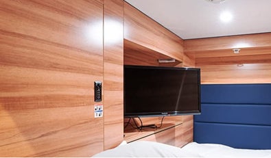 リブマックスが提供するキャビンタイプの客室は、Wi-Fi完備で専用テレビもついた機能的なカプセルルーム。全店舗サウナ付き温泉大浴場をご宿泊中にご利用いただけます。