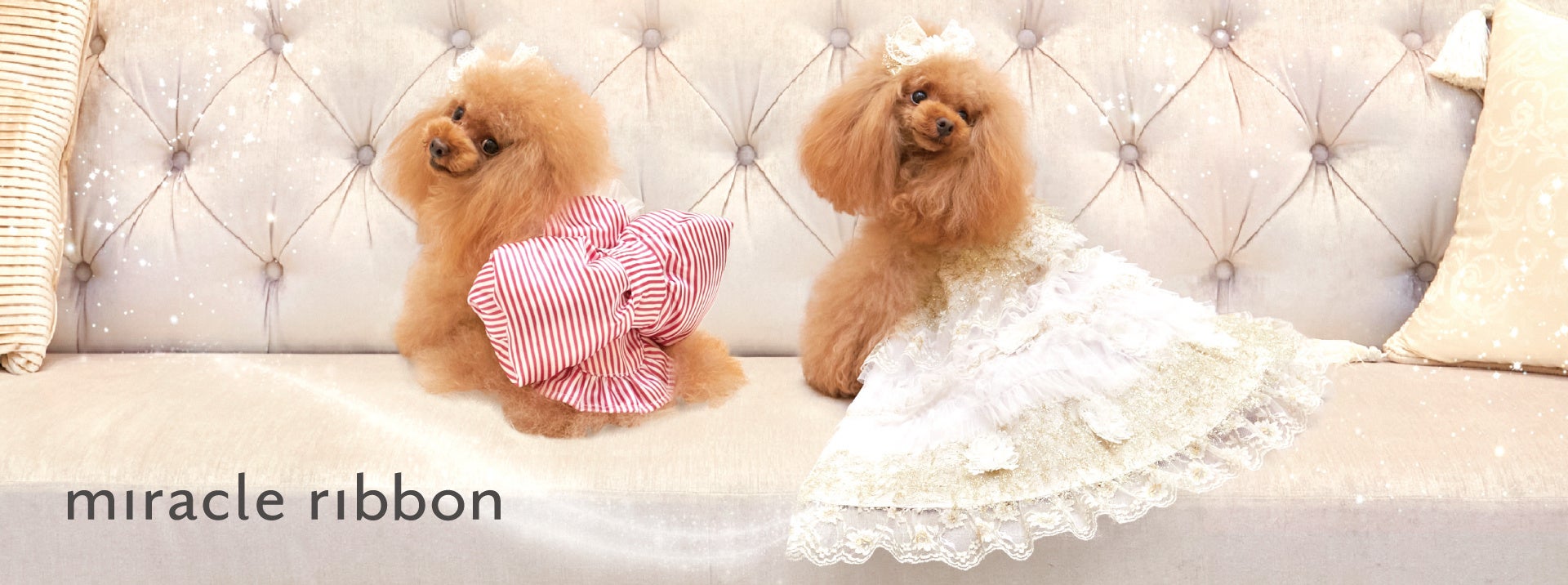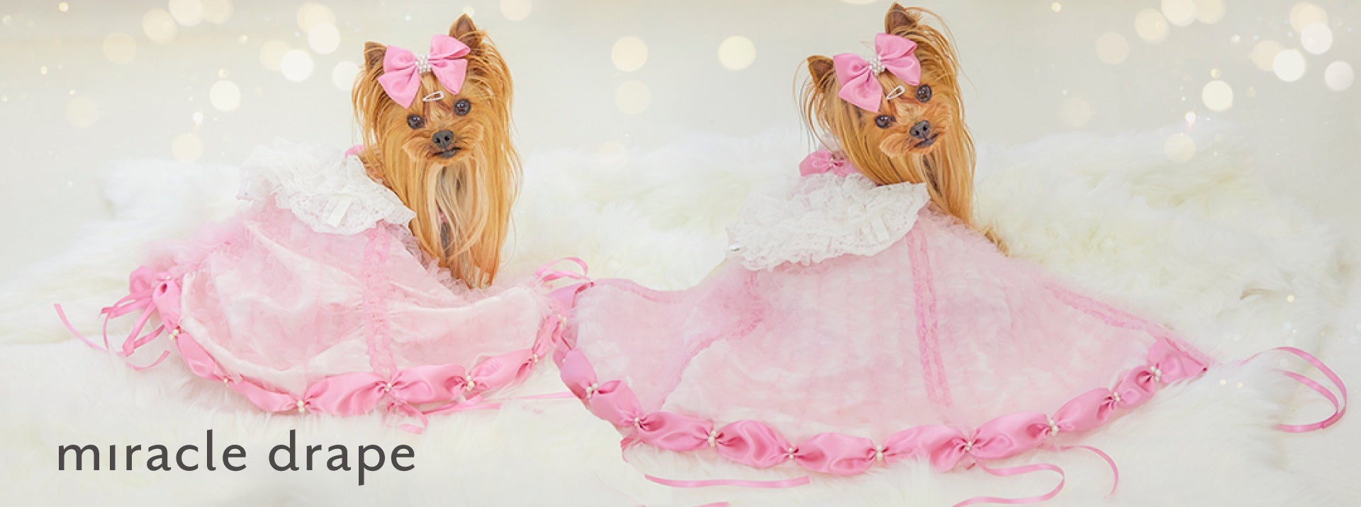 チワワなど1kg前後のワンちゃんからトイプードルやシュナウザーなどの6kg前後のワンちゃんまでのドレスやウェアをとり揃えております。他にはない、2way、3wayに変化する特許申請中のドレスを取り揃えております。