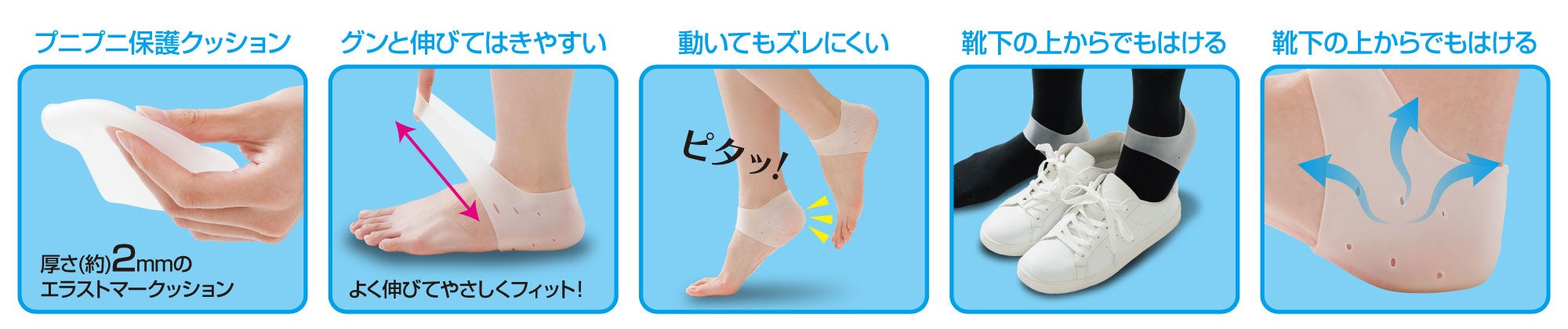 ■かかと用は靴下の上からでも着用OK/足裏用はパンプスやヒールでも使えます。