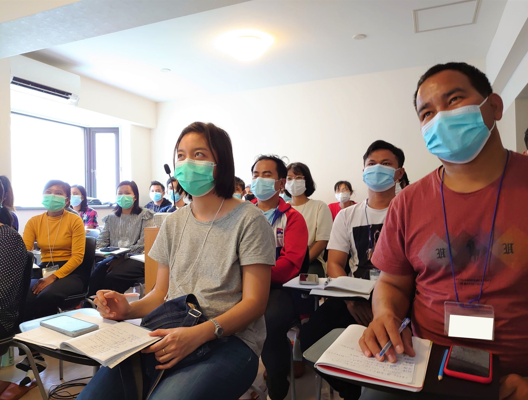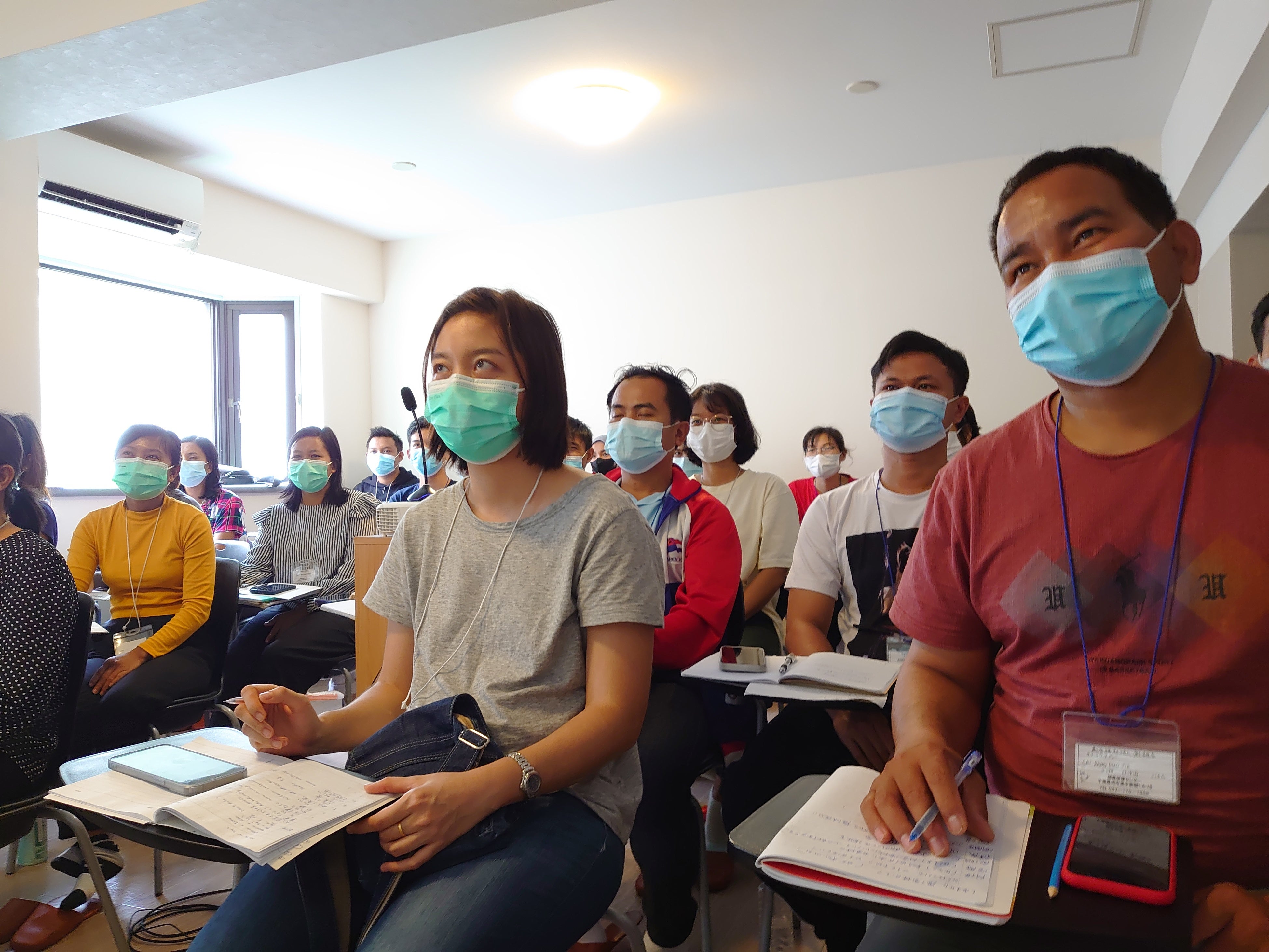 研修センター内での生活の様子や講習で印象に残っていることなど、お話してくださいました。将来は介護福祉士になりたいとの夢も語ってくれました。
