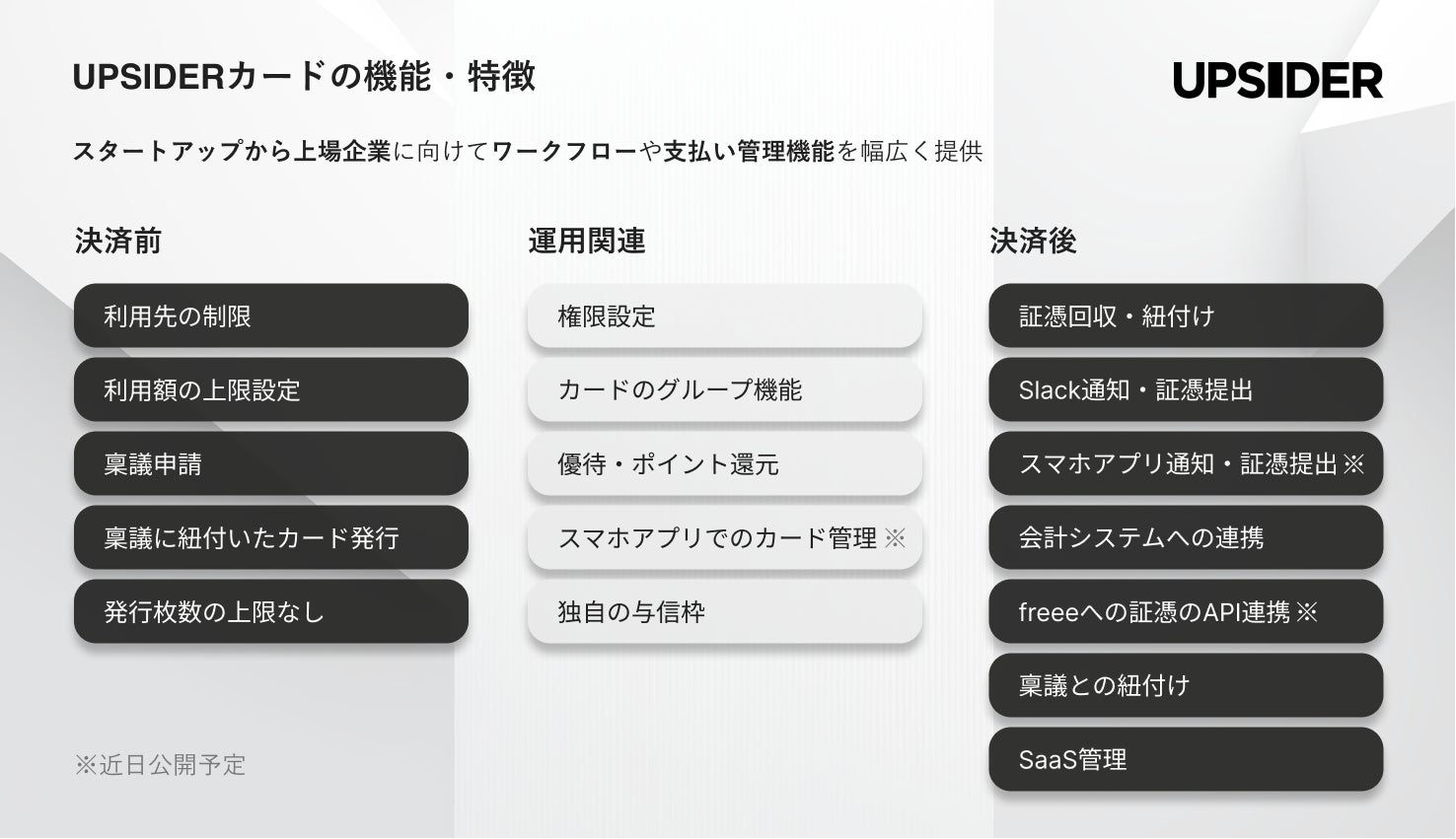 当社は、「挑戦者を支える世界的な金融プラットフォームを創る」をミッションに、法人カード「UPSIDER」およびビジネスあと払いサービス「支払い.com」を提供しており、両サービスの利用社数は15,000社を超えています。