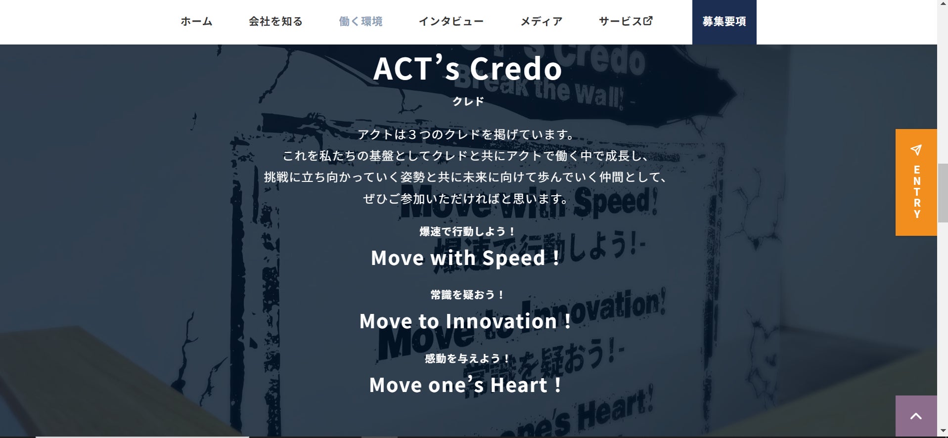 また、アクトのCredoである「爆速で行動しよう!」「常識を疑おう!」「感動を与えよう!」の3つを実現・実行出来る人材を採用し共にチャレンジしたいと考え、採用サイトを新たに開設しました。