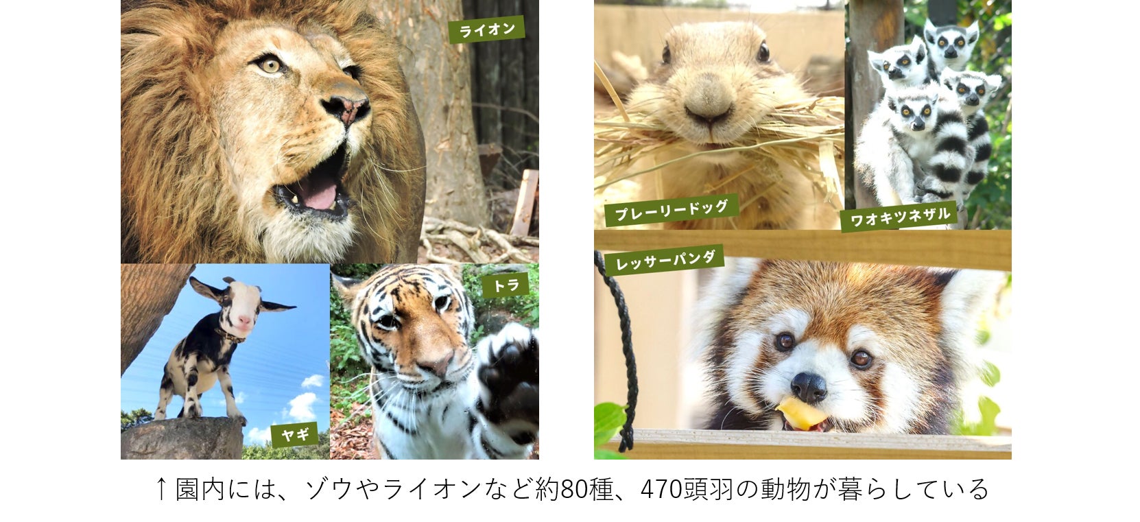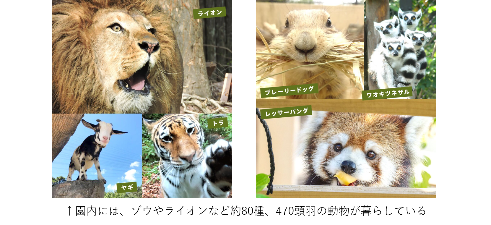 園内には、ゾウやライオンなど約80種、470頭羽の動物が暮らしています。