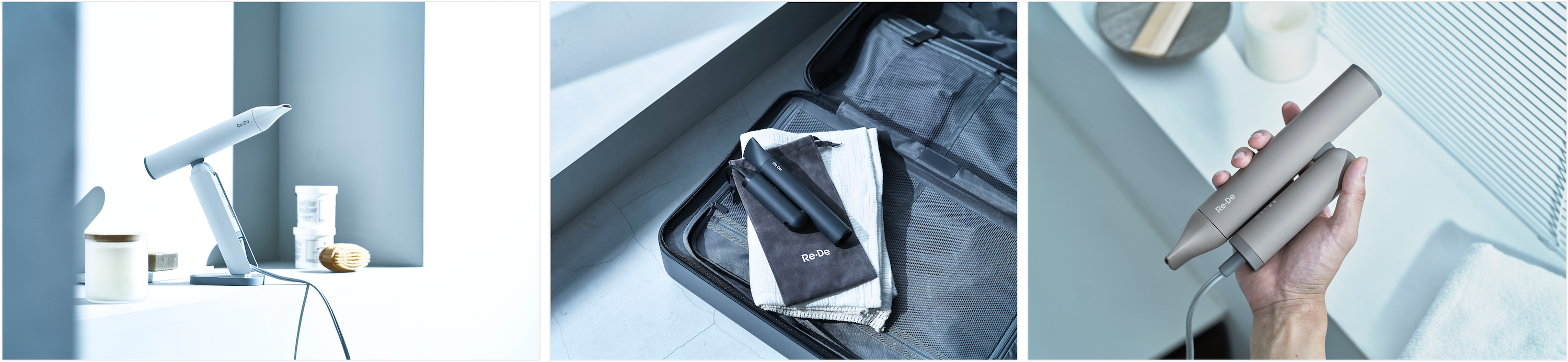 「Re・De Hairdry」は、業界トップクラスとなる3.6m3(立方メートル)の風量・53m/秒の風速による頭皮と髪を健やかに保つヘアケア性能と、たった255gという驚きのコンパクトさを実現した革新的なドライヤーです。