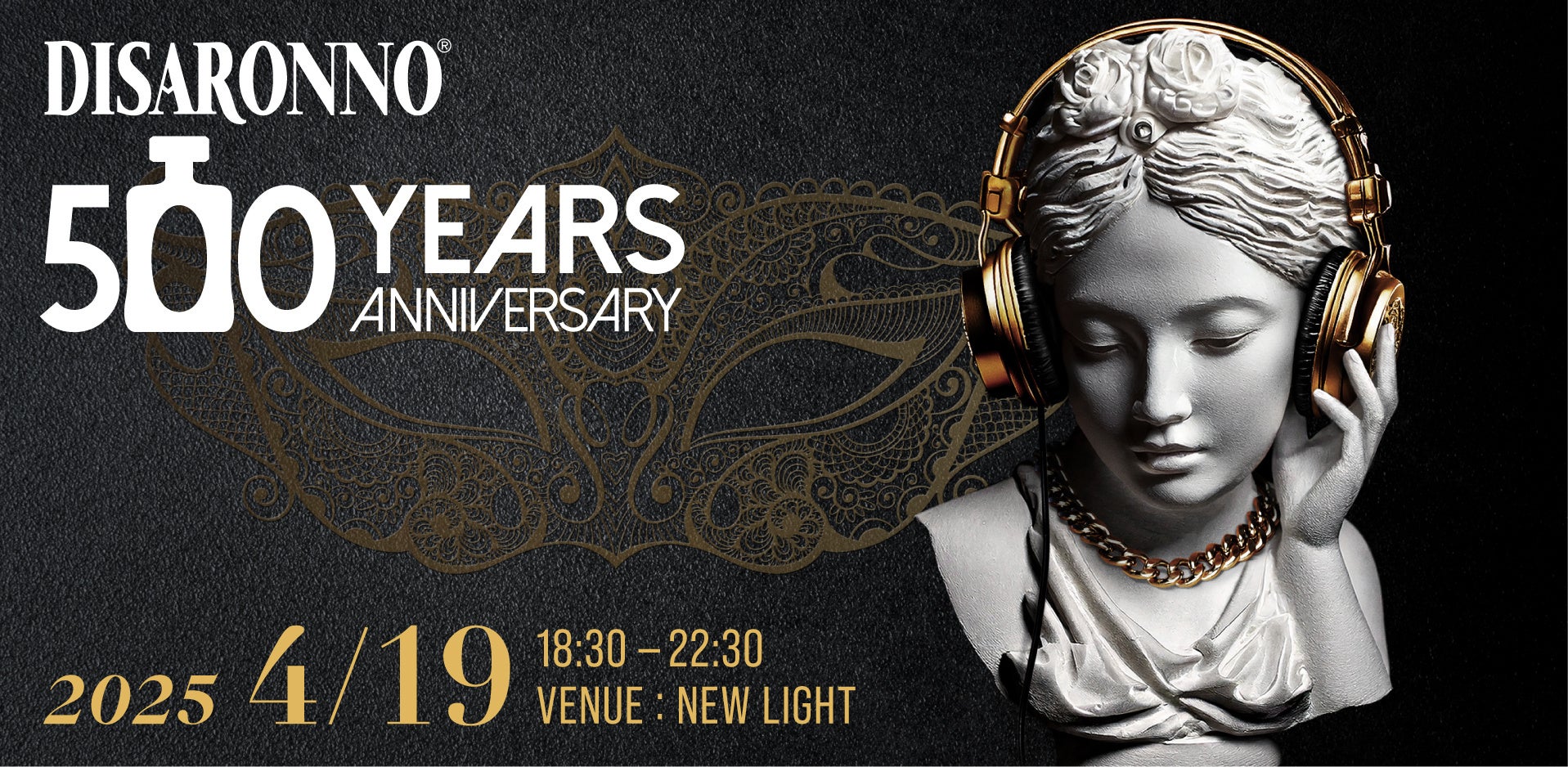 株式会社ウィスク・イー(東京都千代田区 代表取締役社長 遠山公隆)は、同社が輸入代理店を務めるイタリアンアマレットリキュール「ディサローノ」の誕生500周年を記念し、2025年4月19日(土)、渋谷のグランドダイニング「NEW LIGHT」にて『Disaronno 500 Years Anniversary』を開催します。