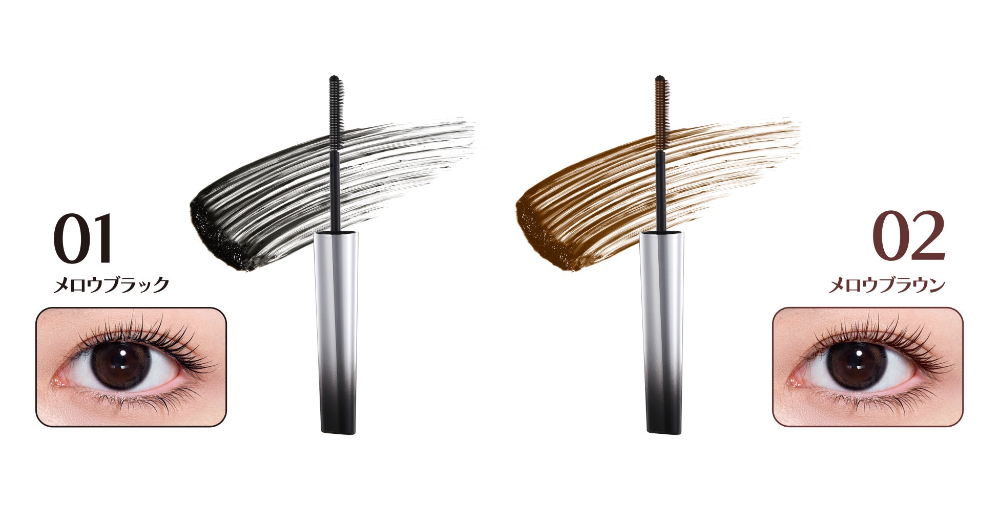 2重フィルム*がまつ毛を包みこみ、にじみやくずれを防いで長時間メイクを保つ。