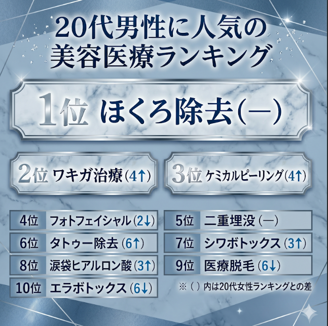 人気施術ランキングから見る20代男性の美容医療トレンド