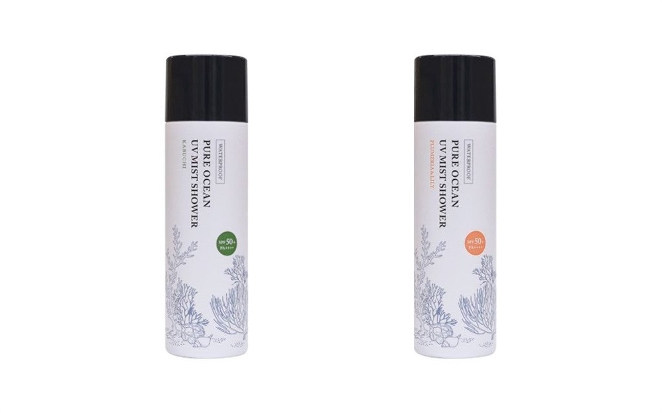 今回発売する『ピュアオーシャンUVミストシャワー』は、サンゴにダメージを与えてしまうオキシベンゾンとオクチノキサートを使用せず、SPF50+、PA++++という高い効果を実現した。サンゴに優しいスプレータイプの日焼け止めです。ピュアオーシャンUVミストシャワーには、12種の沖縄県産美容成分の他にも、保湿成分としてセラミドやひんやり感じるアルコールも配合されており、ベタベタせず塗っているのを忘れるほど軽いつけ心地になっています。