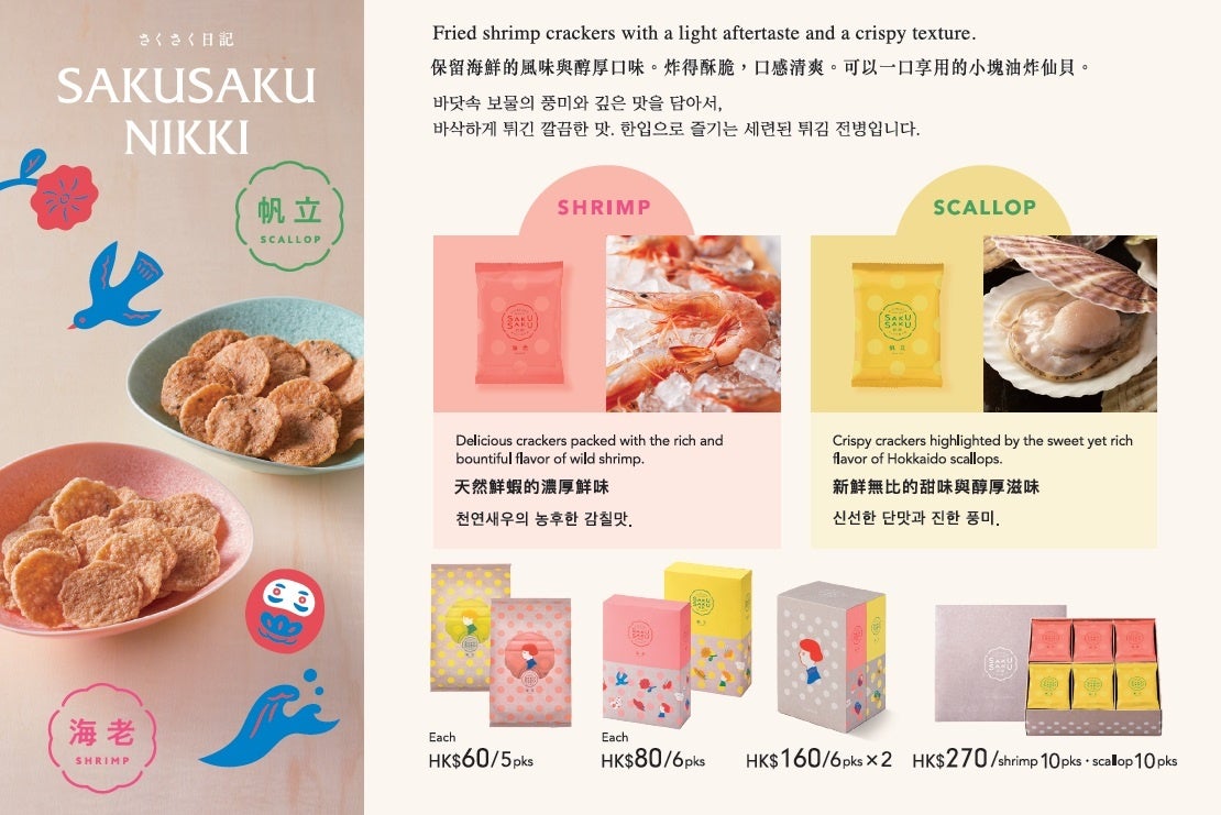 取扱商品:〈ゆかり〉、〈さくさく日記[海老]〉、〈さくさく日記[帆立]〉
