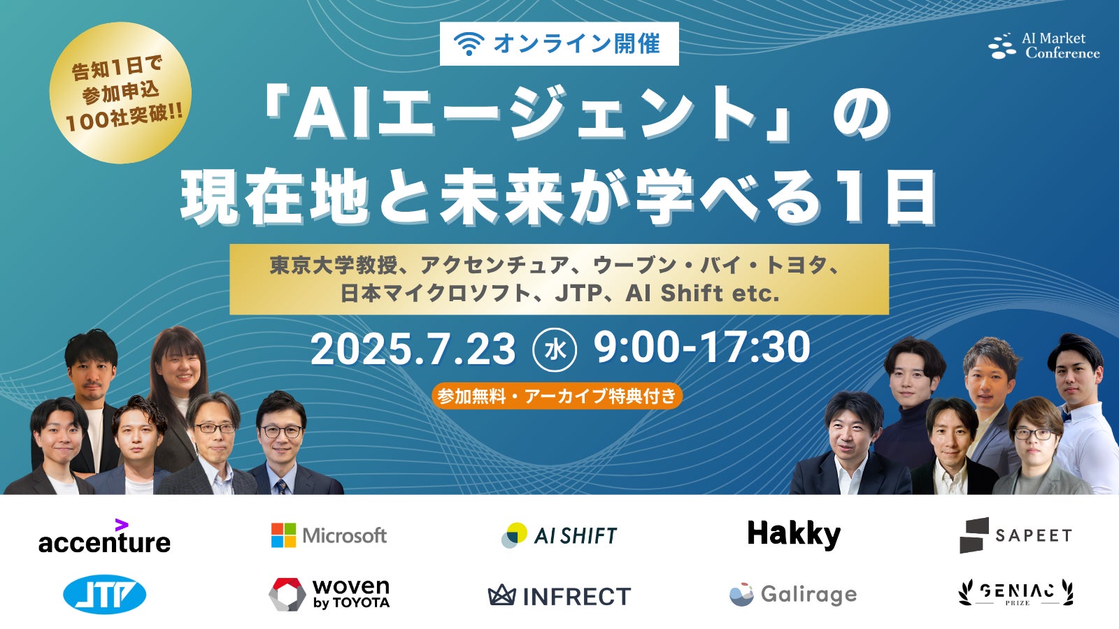 【告知開始1日で申込100社突破!】東大教授、マイクロソフト、アクセンチュア登壇のカンファレンス『AI Market Conference〜「AIエージェント」の現在地と未来が学べる1日〜』