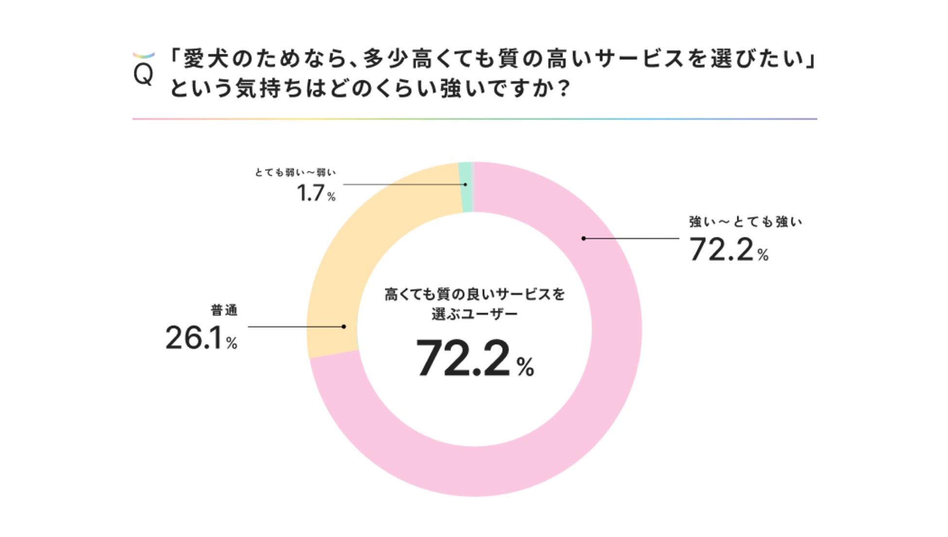 「愛犬のためなら、多少高くても質の高いサービスを選びたい」という気持ちについて、7割以上のWan!Passユーザーが「強い」または「とても強い」と回答しています。