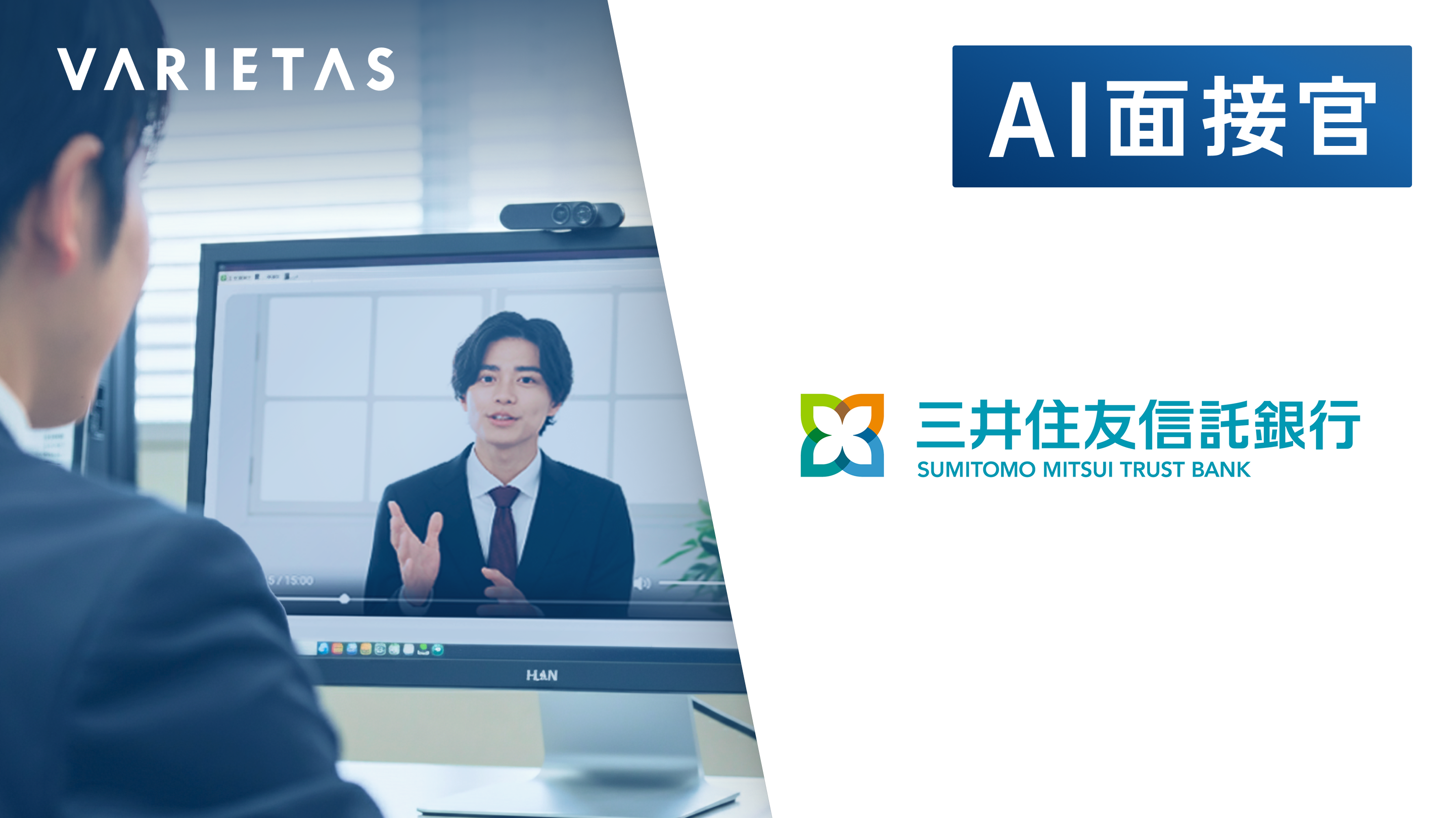 株式会社VARIETAS(読み方「バリエタス」)は、このたび、三井住友信託銀行株式会社(以下「三井住友信託銀行」)の採用プロセスにおいて、当社が開発・提供する対話型AI面接プラットフォーム「AI面接官」が導入されたことをお知らせします。