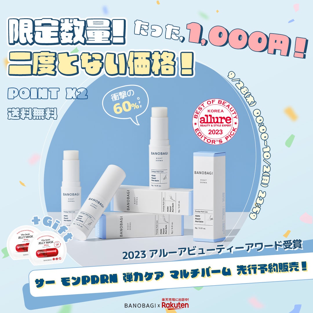 一方、今回の受賞を記念して、バノバギは9/28(木)00:00~10/2(月)23:59まで「PDRNリペアリアルバーム」を楽天ブランド館にて数量限定で予約販売する予定です。 通常価格から60%割引された破格価格1,000円、ポイント2倍の積立と送料無料、ギフト贈呈などの追加特典も共に提供されます。