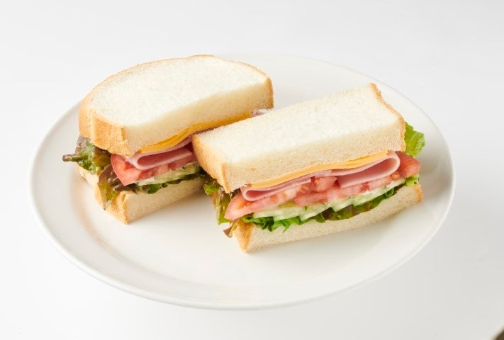 サニーレタス・トマト・きゅうり・ロースハムチェダーチーズを合わせフレッシュな味わいに(パンはトーストしておりません)