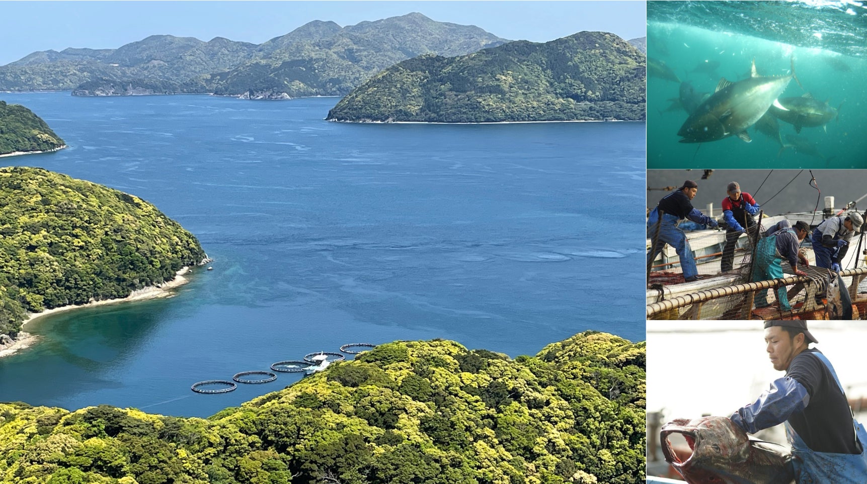 長崎県は養殖クロマグロの生産量日本一を誇り、なかでもブリやヒラマサの養殖が盛んな新上五島町ではその養殖技術を生かし、20年ほど前から町をあげてクロマグロの養殖を始めました。生マグロの育つ若松瀬戸は西海国立公園に指定されており、外洋からのきれいな海水が通り抜けているので、非常に透明度が高く、養殖には好条件が揃っています。マグロは他の魚類よりも目が良く、透明度の高い海だと生簀の中でも高速で泳ぐことができるといわれています。さらに、地形が入り組んでいるため海流の流れが速く身が引き締まり、きめ細やかな肉質となり赤身もトロも旨味のあるマグロに育ちます。