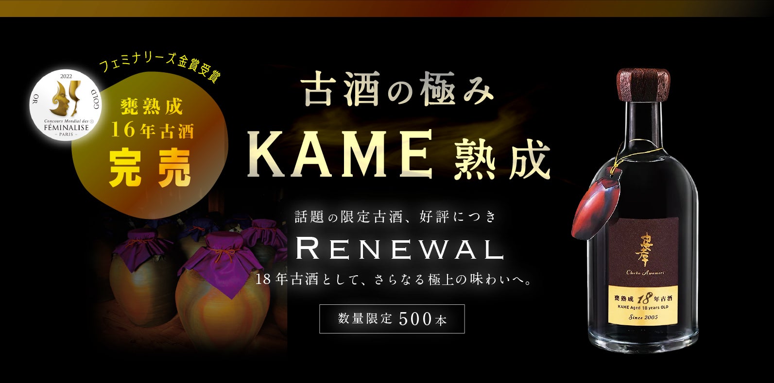 【忠孝酒造】フェミナリーズ金賞受賞の甕熟成16年古酒が完売!多くのご要望に応え、数量限定品で18年古酒として新たにリニューアル発売。