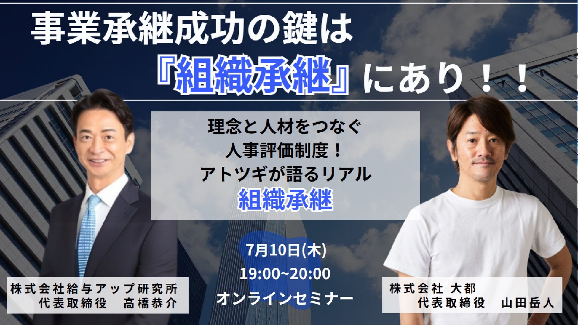 理念をどう浸透させ、人材をどう活かすか──事業承継において避けて通れない「組織承継」の本質に迫るオンラインセミナー『事業承継成功の鍵は「組織承継」にあり!!』が、株式会社給与アップ研究所と株式会社大都の共催で2024年7月10日に開催されました。