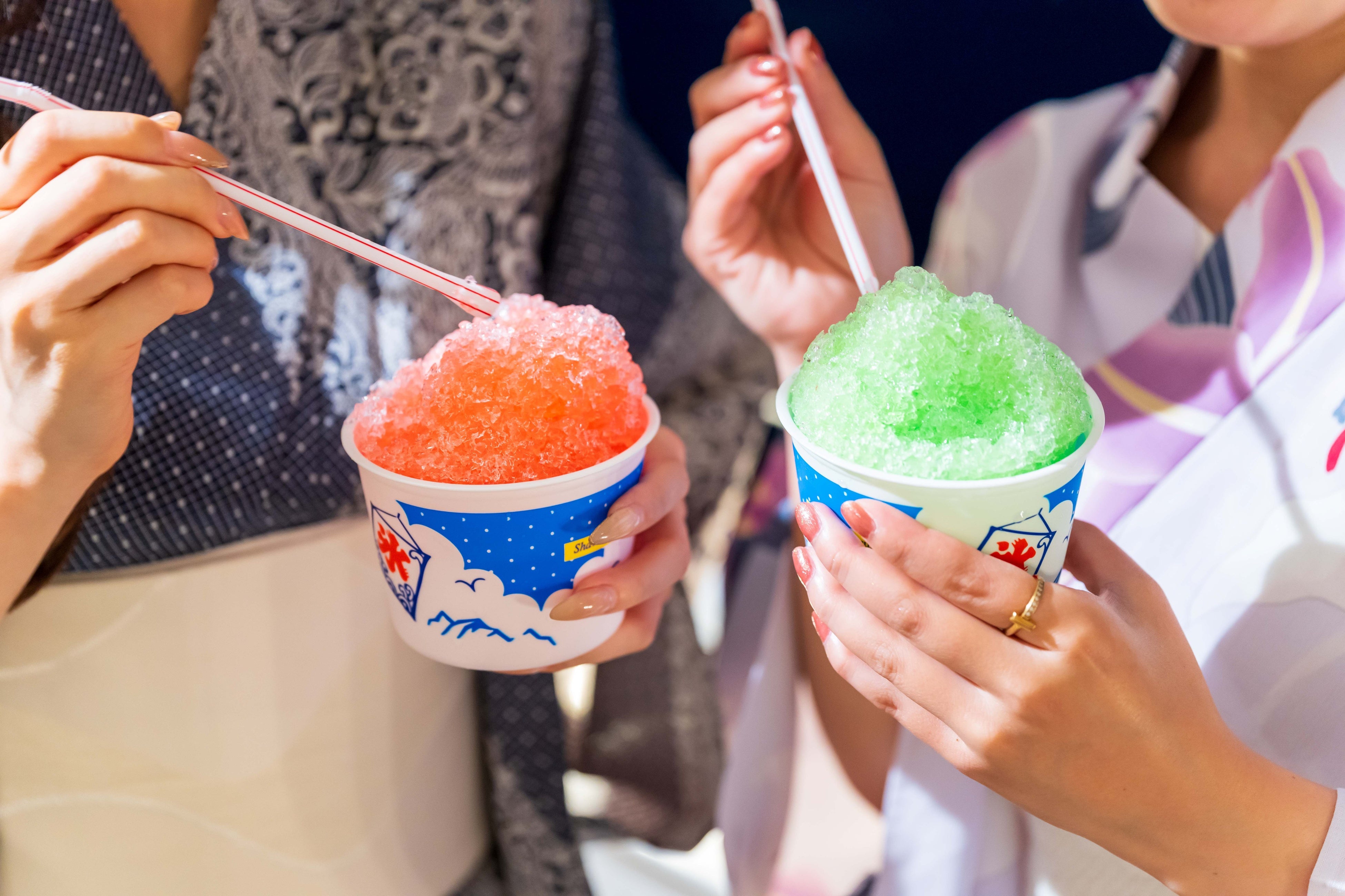 期間中、船内のあちらこちらでは夏らしい涼しげな演出が。船内に飾られた風鈴の音色を楽しんだり、ふわふわのかき氷や冷えた生ビールで乾杯!