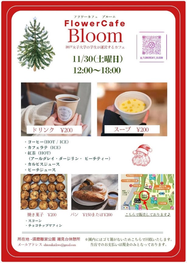 11/30 須磨離宮公園に学生が手掛けたFlower cafe Bloomが出店します。