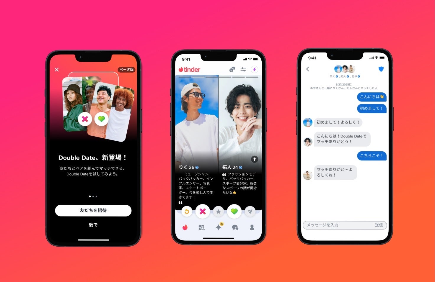 Tinder®、友達と2人組でマッチできる新機能「Double Date」を発表 ひとりの出会いもいいけれど、ふたりならもっと楽しい。Tinderが提案する、新しいマッチングのかたち。