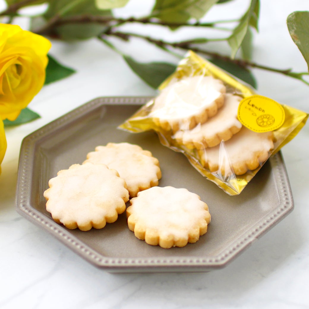サクサク・ホロホロのクッキーにパウダー状のレモンゼスト(レモンの皮のすりおろし)が練り込んであります。クッキーの上に施したレモン果汁入りのアイシングは、クッキーとの絶妙なバランス!よりレモンを感じていただます。