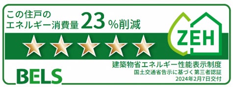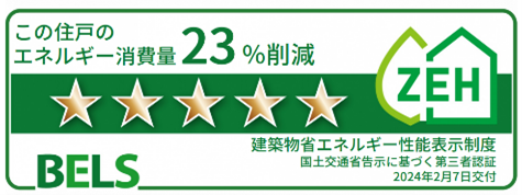 ZEH水準 : 建築物省エネルギー性能表示制度BELS★★★★★ / 断熱性能等級6