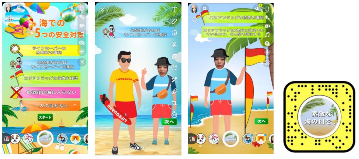 Snapchatが「海の日」に向けて2つの日本オリジナルレンズを発表!海での安全意識を高める事前学習型AR体験 及び 思い出に残る瞬間を演出するビーチファッションAR試着レンズ