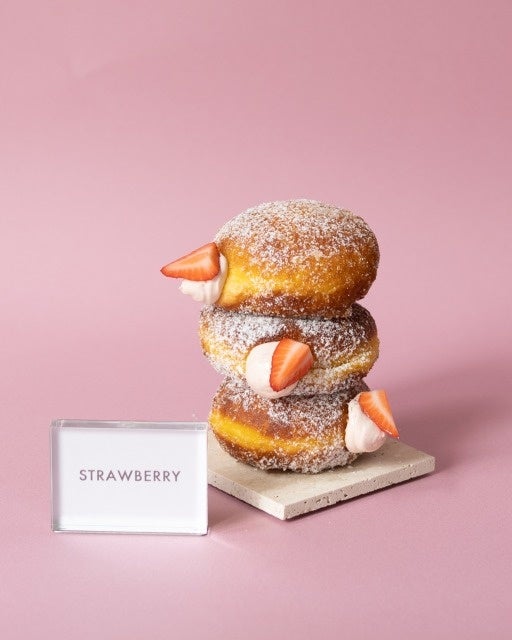 酸味の効いたいちごと、そのいちごをたっぷりと使用したクリームを入れた後味さっぱりな生ドーナツです。
