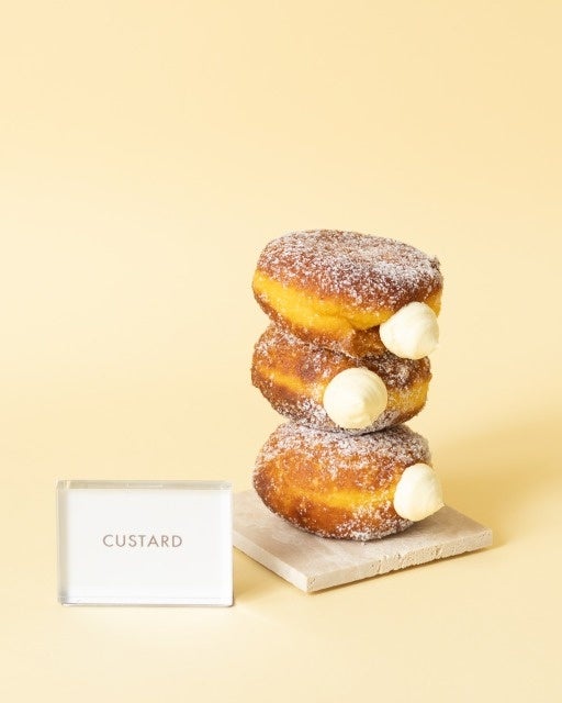 バニラの風味が香るやさしい風味となめらかな口当たりが特徴のカスタードと生クリームをあわせた生ドーナツです。