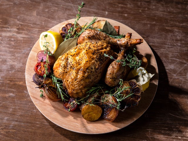 丸鶏を一羽丸ごとローストした、クリスマスにピッタリの豪華な一品。ハーブやトリュフの風味を楽しめるジューシーな味わいです。ご家族やお仲間とにぎやかに取り分けて楽しんで。
