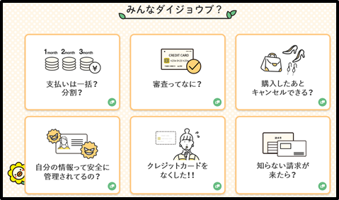 : クレジットの仕組みやご利用上の注意点などを、アニメーションなどでわかりやすく解説