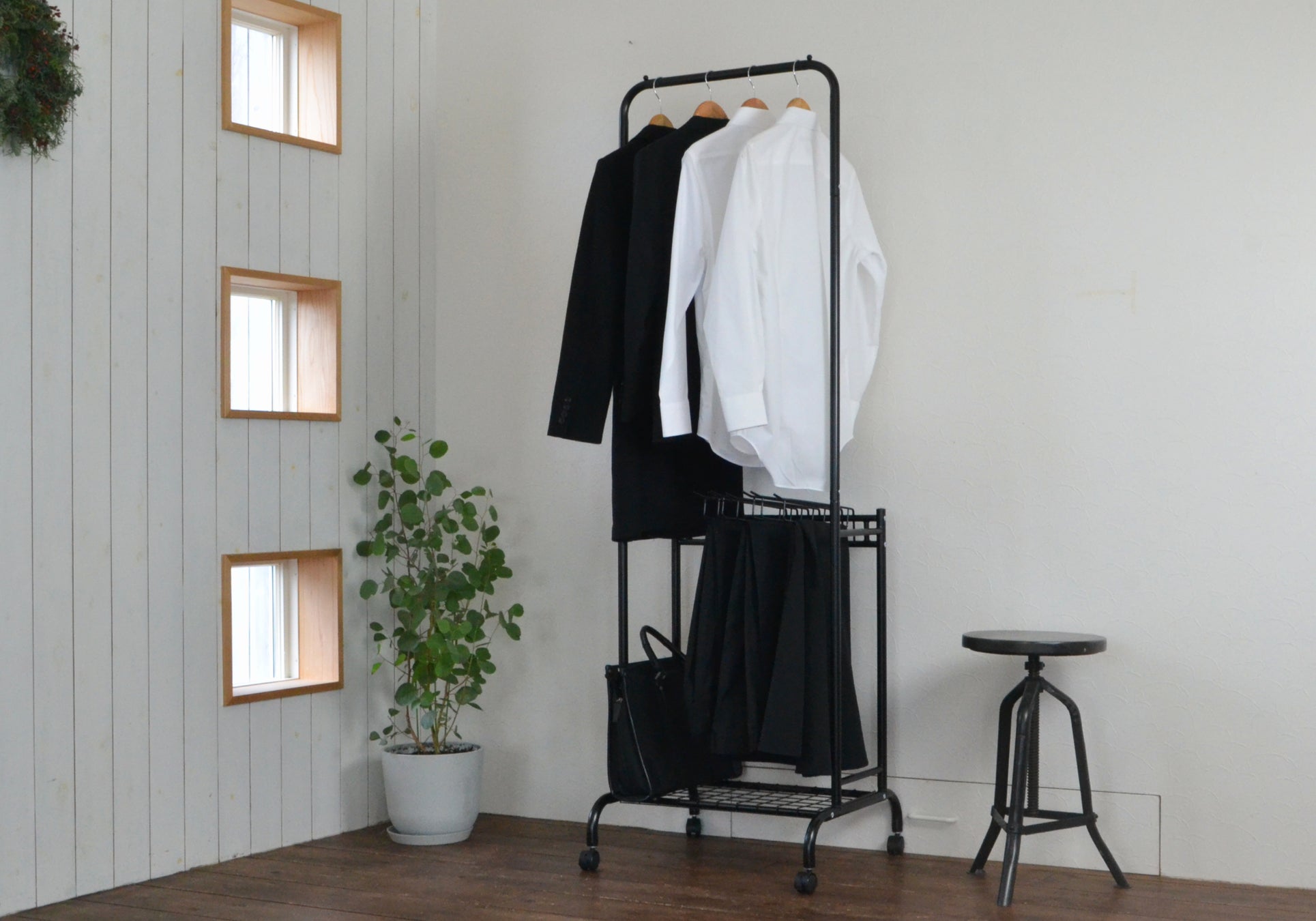 この度、新生活で活躍する、アウターやトップス、さらにボトムスまで一つの場所にまとめてすっきり収納できる『ハンガーラック スラックスハンガー付き』を2025年1⽉31⽇(金)に発売いたしました。