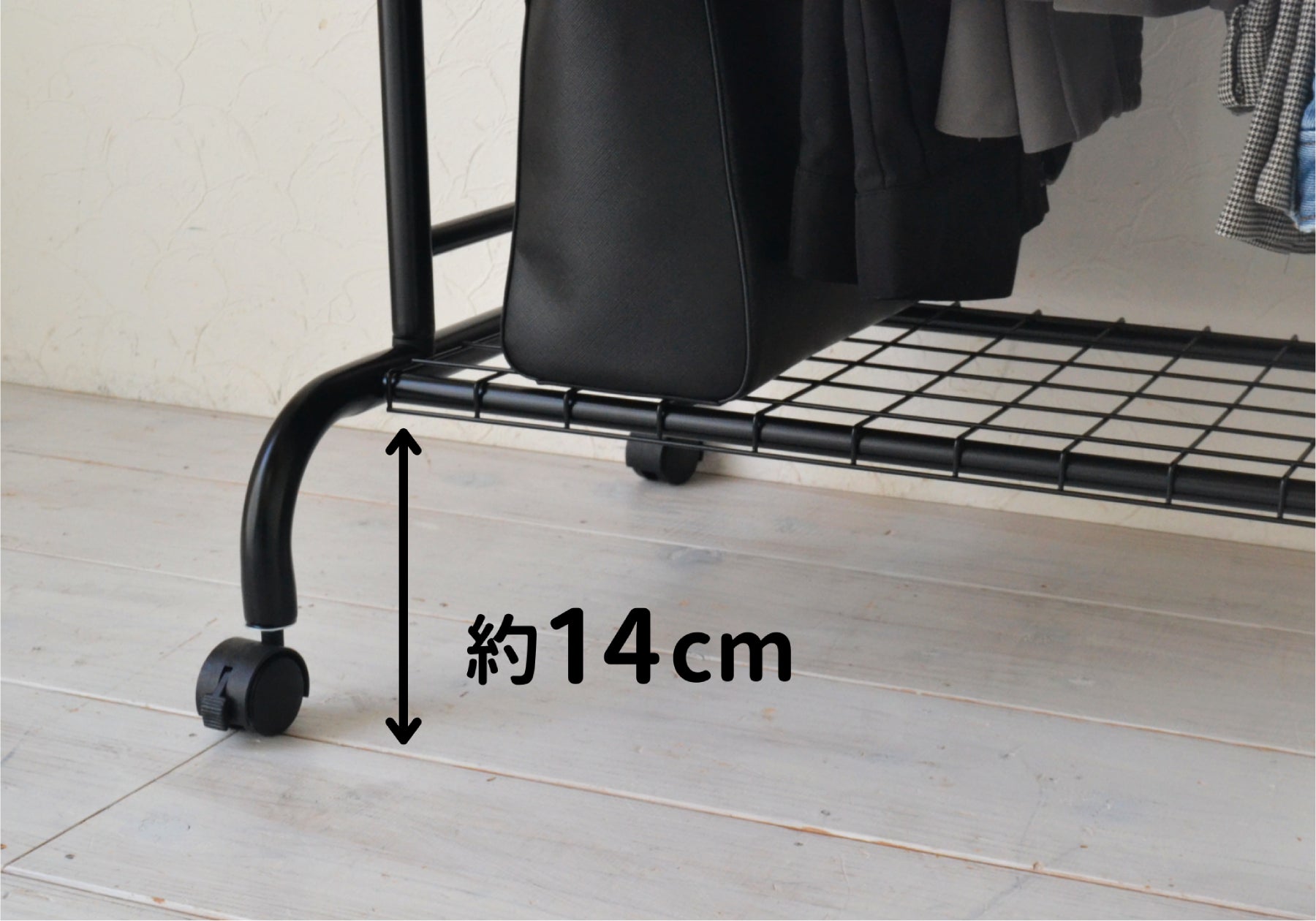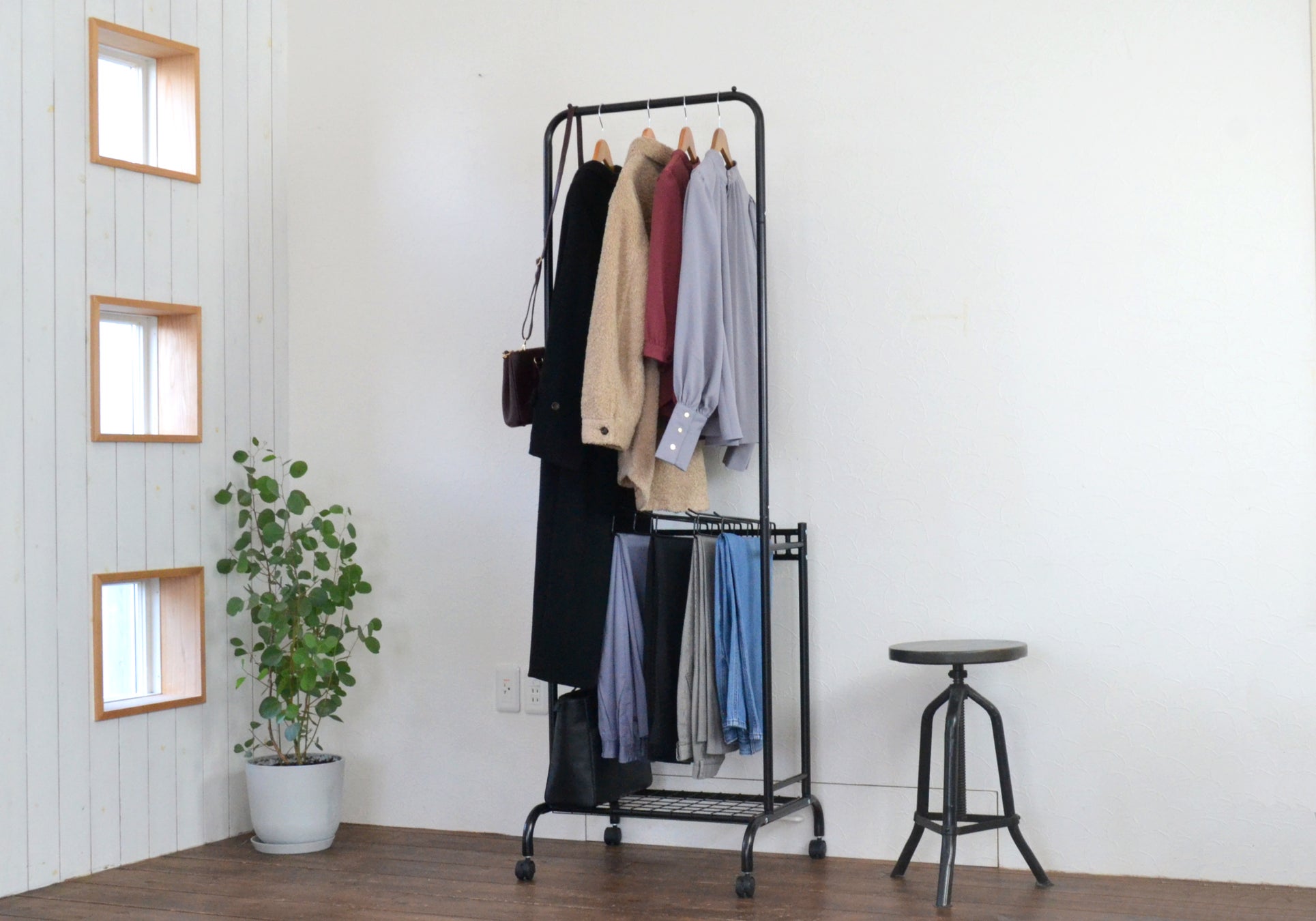 省スペース設計ながら、洋服を掛けたまま壁にピッタリ寄せてもハンガーが壁に当たらないような構造。トップスなどを真っ直ぐ掛けることができて、長めのワンピースやアウターなども収納できるサイズです。