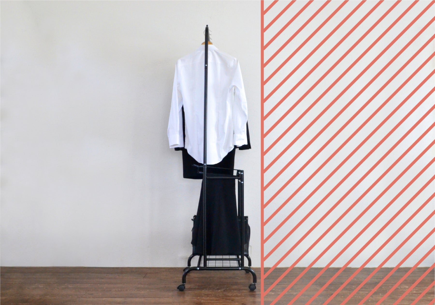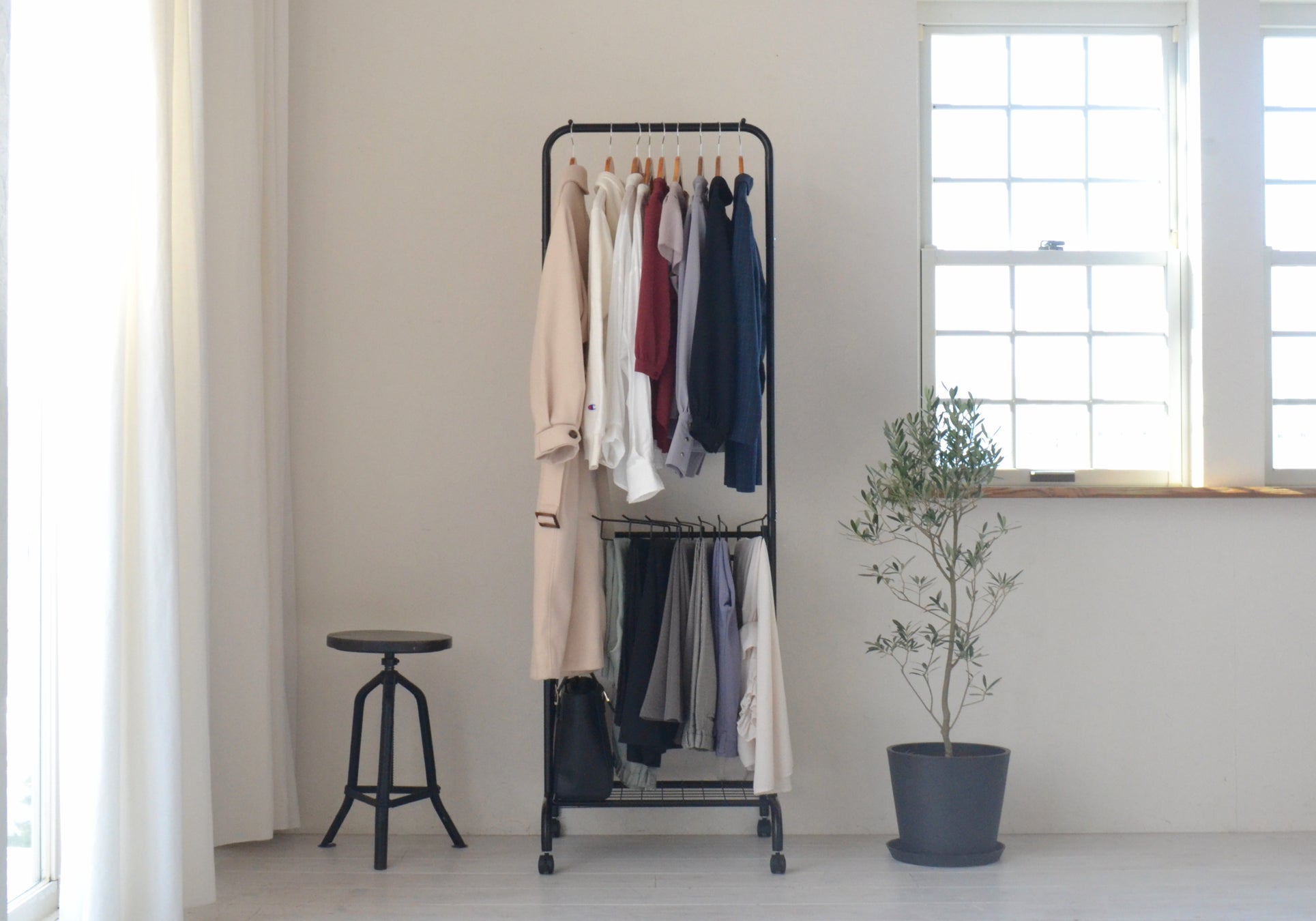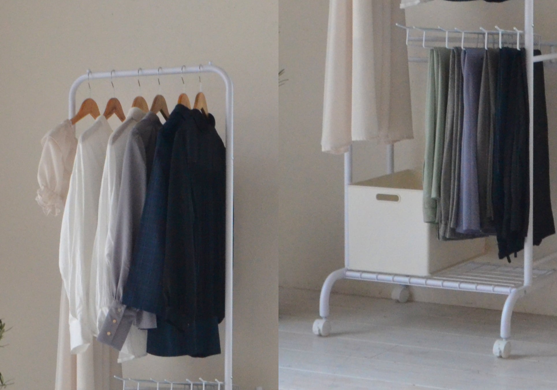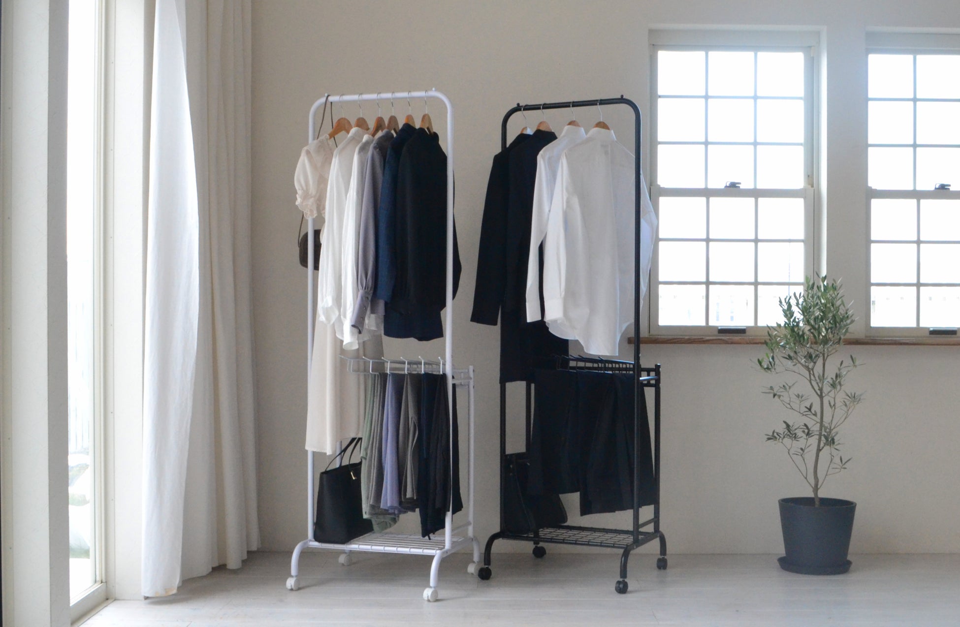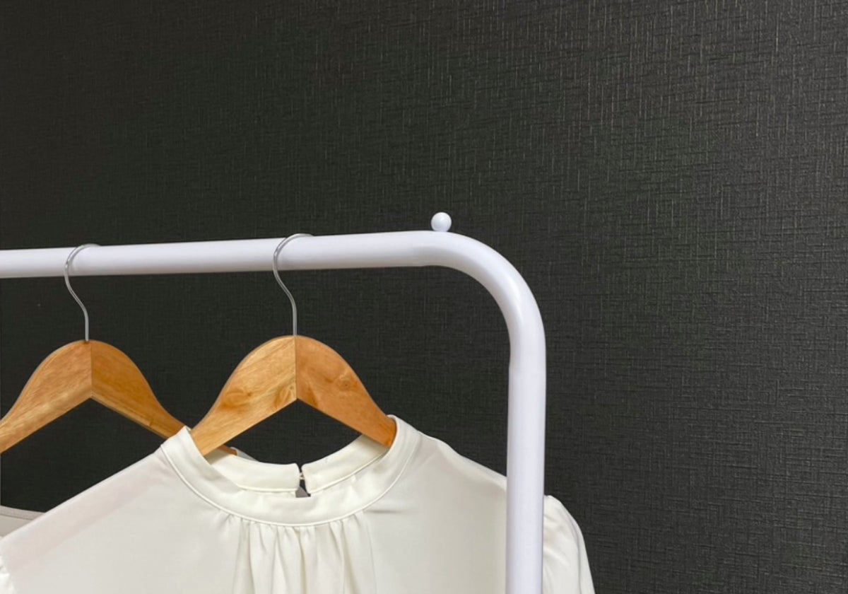 今回発売する『ハンガーラック スラックスハンガー付き』はアウターやトップス、さらにボトムスまで一つの場所にまとめてすっきり収納できるハンガーラック。洋服をまとめて収納できるため、お部屋のスペースを無駄なく活用できます。
