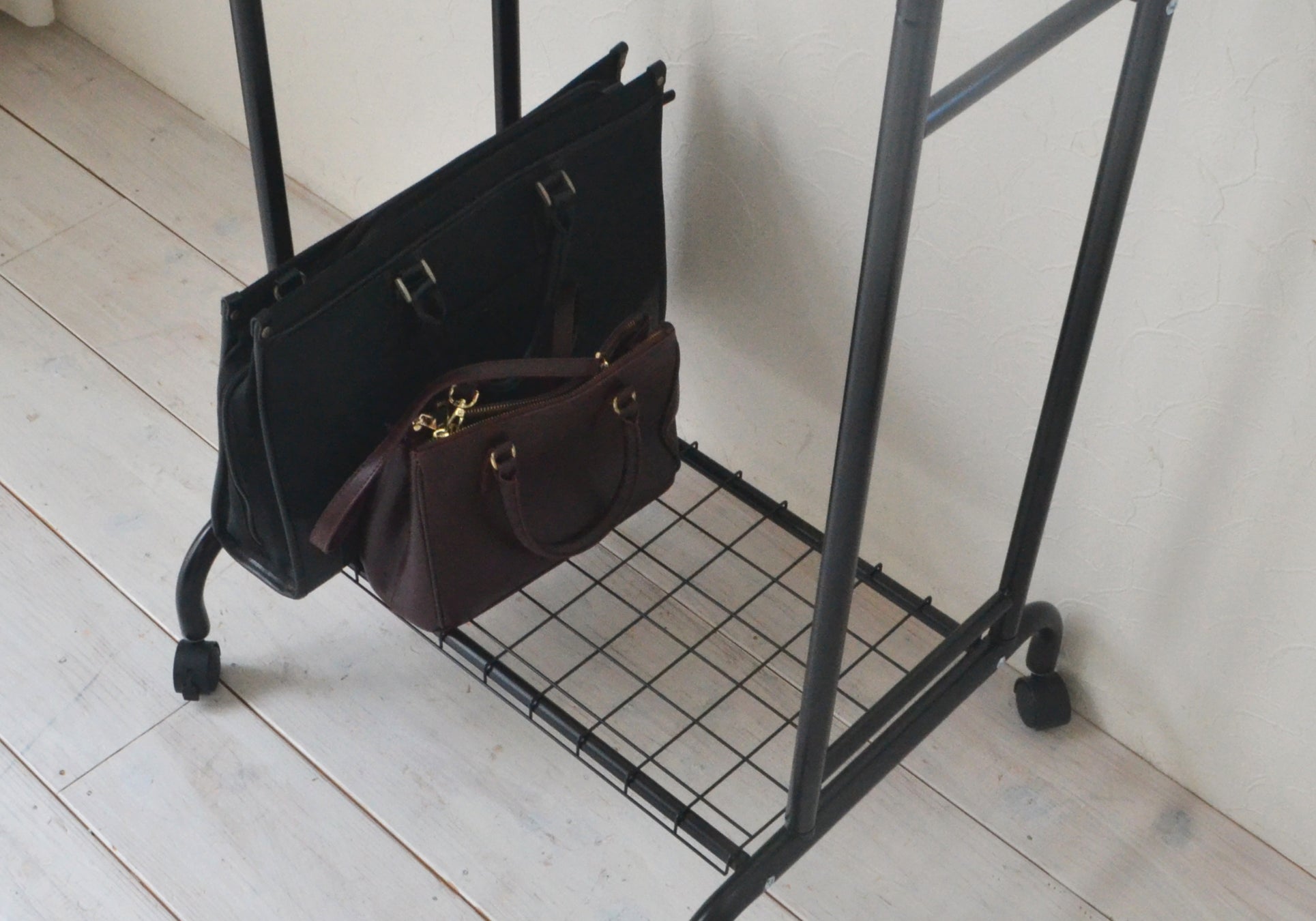 使用頻度の高い仕事服をまとめて出勤前の身支度コーナーとしてもお使いいただけます。ハンガーラック下には網棚があり、バッグなどの小物を置けるので、必要なものをひとまとめにすることができ、準備がスムーズになります。また、忘れ物の予防もできるかもしれません。