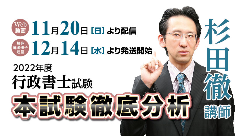 2022年行政書士試験の当日、杉田 徹講師による本試験分析動画(速報版)を無料配信いたします。