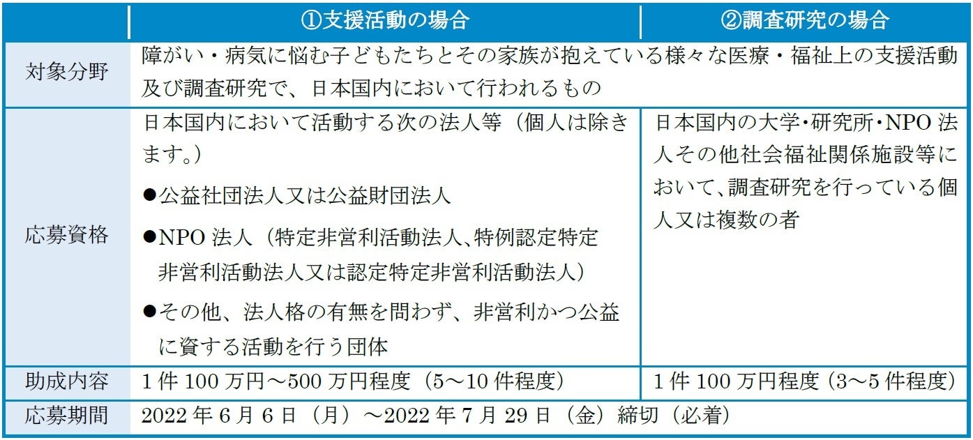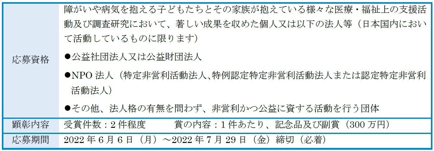 今後も引き続き、障がいや病気に悩む子どもたちとその家族の支援や調査研究をされている方々を幅広く公募し、財団の趣旨である“我々が手掛けなければ取り残されてしまう活動を支援する”ことで、社会全体の「快」の増大に貢献することを目指していきます。