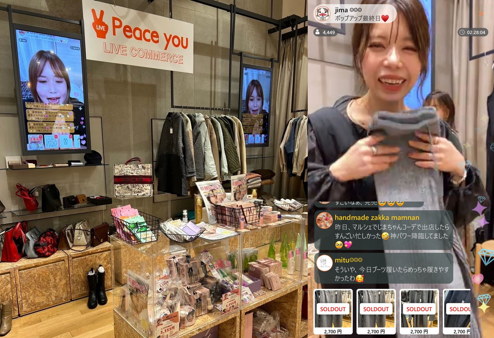 「ユーザーがオンラインとオフラインで“つながる”」をコンセプトに、店頭とライブコマースでの販売を実施した『Peace You Live Shop』は、店頭とライブコマースの盛り上がりが双方に好影響を与える新形態のショップとして、大盛況で終了しました。
