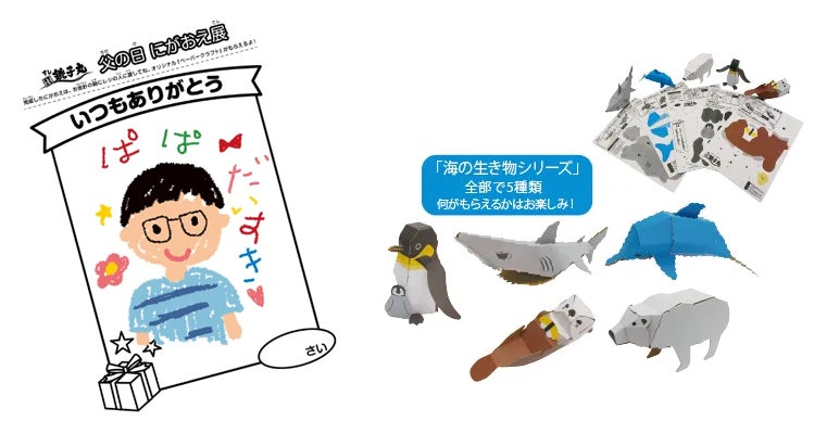 店頭でにがおえに参加するとたのしいペーパークラフトをプレゼントいたします!