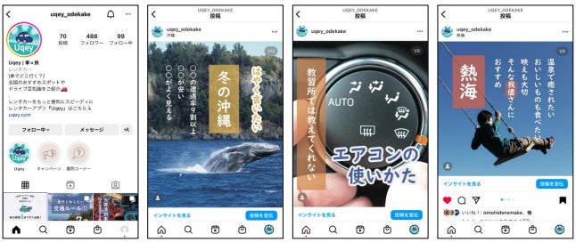 レンタカーマッチングアプリ「Uqey」、インスタグラム開始